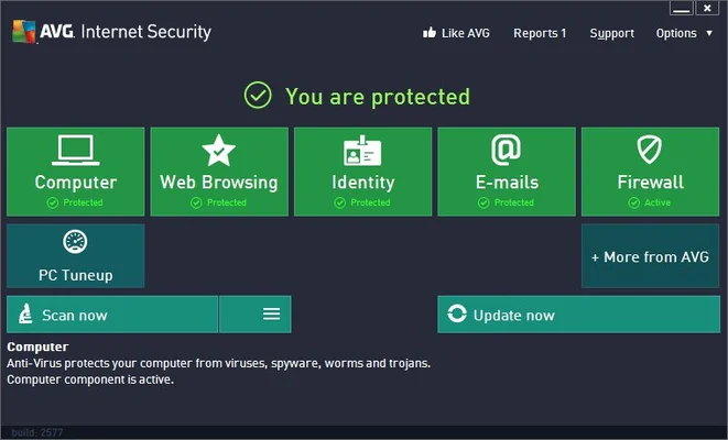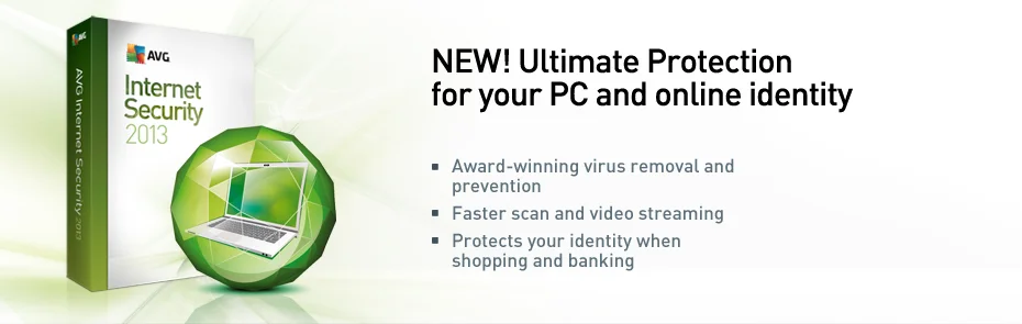 Add free access 24/7, 365 days phone support from our technical experts and it's clear why AVG Internet Security 2013 is the ideal solution for those who shop, bank, browse, email and chat online.