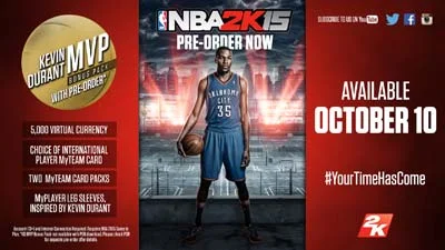 Preorder NBA 2K15 to receive Kevin Durant MVP pack to give you a boost as you start your NBA 2K15 career.