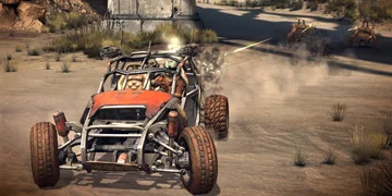 • Frenetic 3rd-person vehicular mayhem - Burn rubber across the wasteland in your very own super buggy! Upgrade and customize your car with special parts, paint jobs and weapons, then test your skills as you battle four-wheeling bandit clans and participate in deadly races.