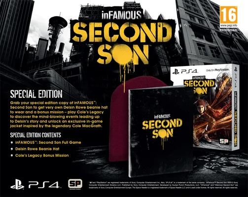 Grab your special edition copy of inFAMOUS™: Second Son to get your very own Delsin Rowe beanie hat to wear and a bonus mission – play Cole’s Legacy to uncover what happened between the devastating events of inFAMOUS 2 and inFAMOUS Second Son. Unlock an exclusive in-game jacket inspired by the legendary Cole MacGrath.